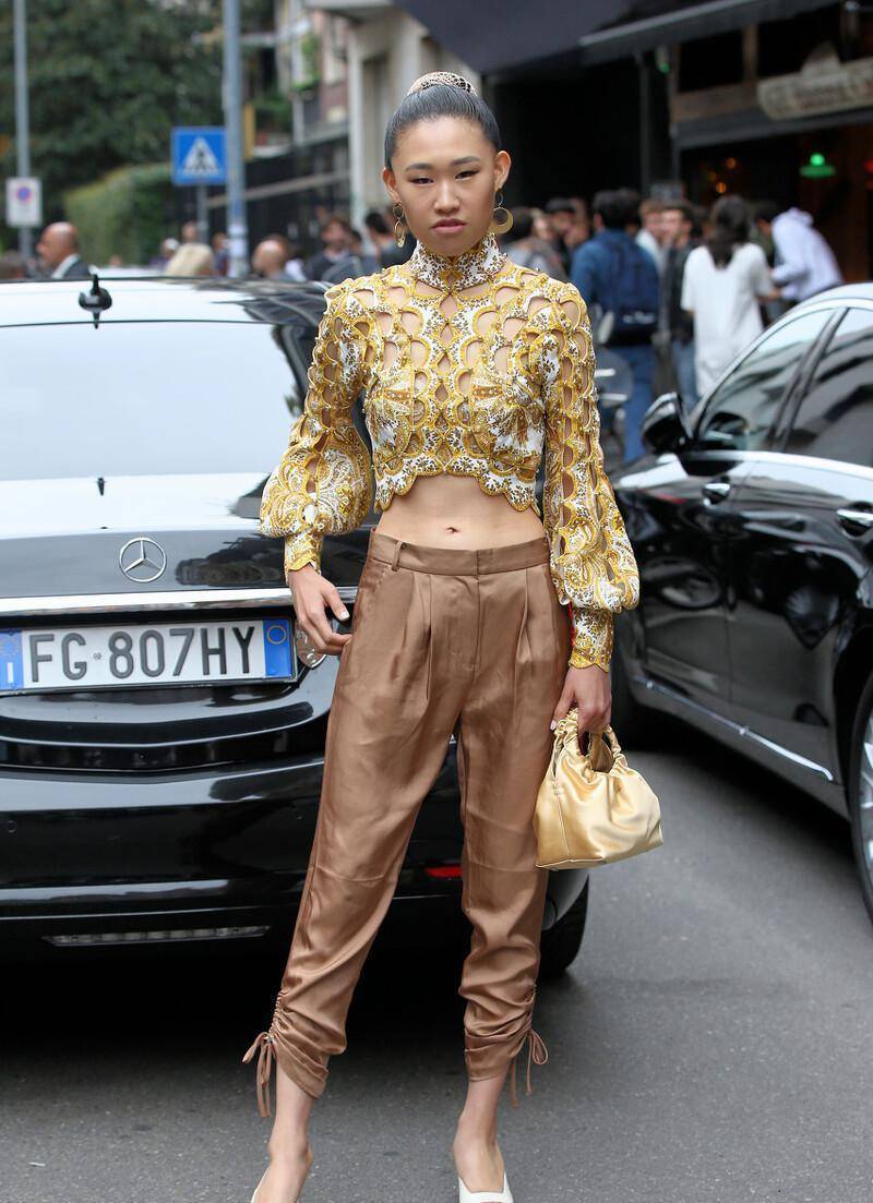 搭配灯笼袖服装能把东方女性的魅力,展现得淋漓尽致,金属链条包也非常适合灯笼袖服装,烘托出时尚复古的气息,非常吸睛。